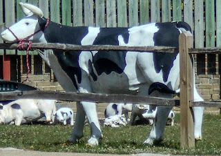 Every walk has a little surprise....a plastic cow and plastic pigs in the farmyard. We were viewing at a distance and thought the goats were plastic too initially...until they moved!